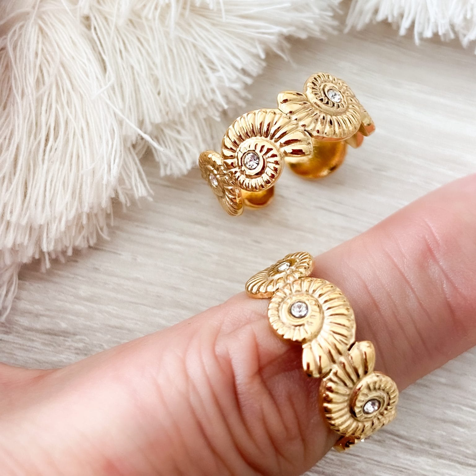 Anillo caracoles dorado, acero inoxidable, Bafy joyeria.
