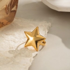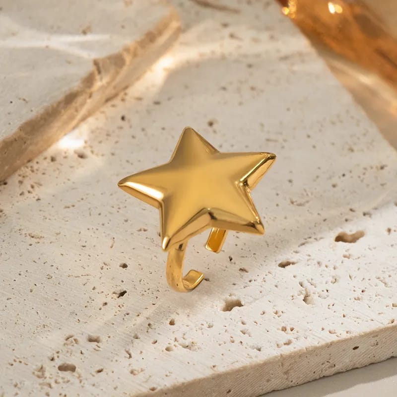 Anillo de estrella, ajustable, de acero inoxidable, chapado en oro de 18 quilates.