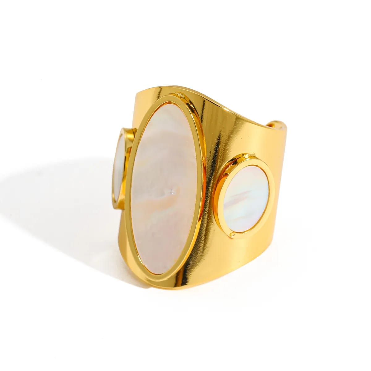 Anillo grueso con madre perla, acero inoxidable, chapado en oro de 18 quilates, ajustable.