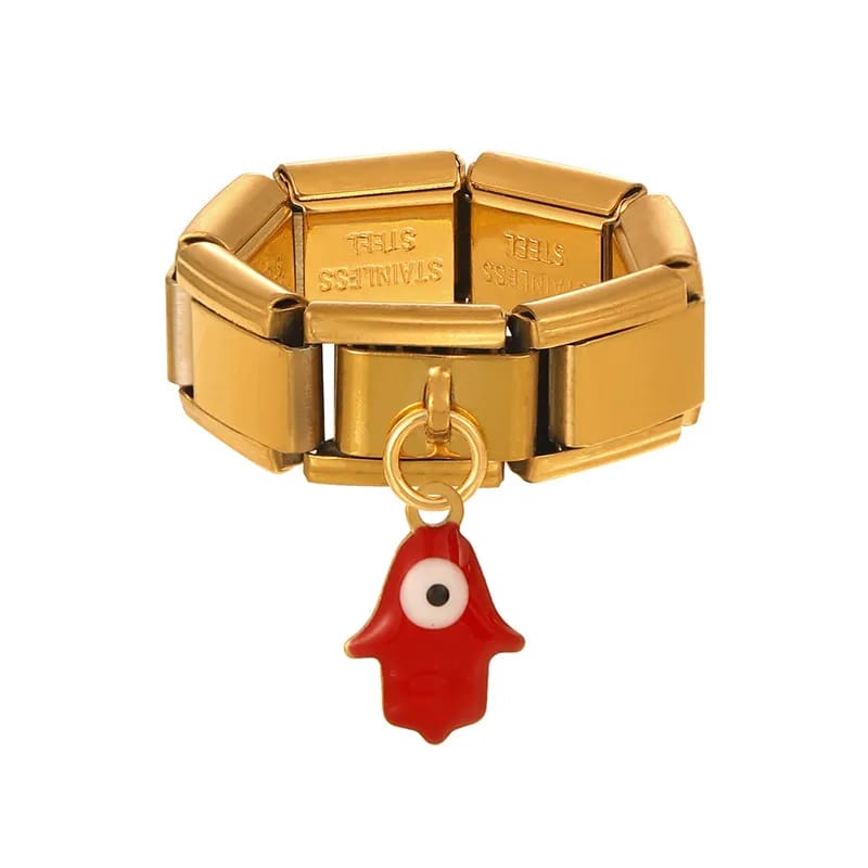 Anillo italiano mano de fátima rojo, acero de titanio, ajustable.