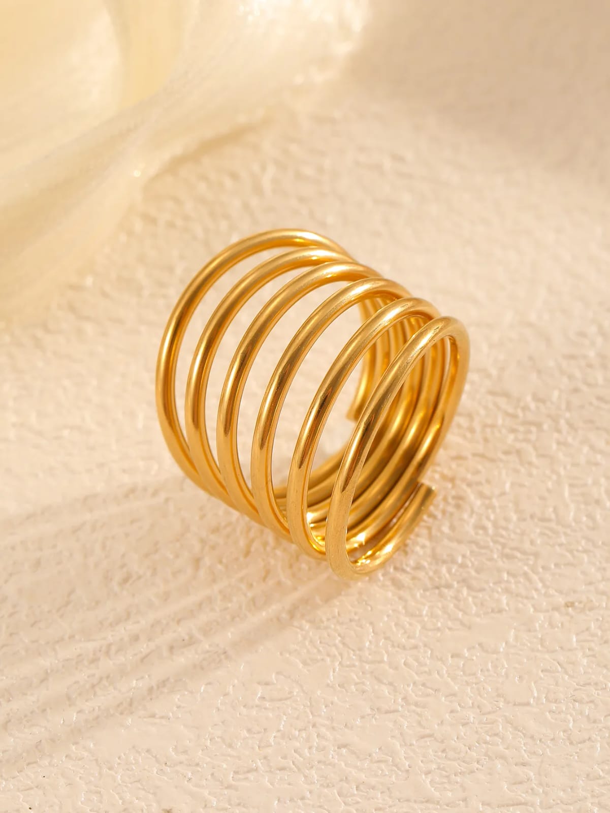Anillo dorado multi aritos, acero inoxidable, #7.