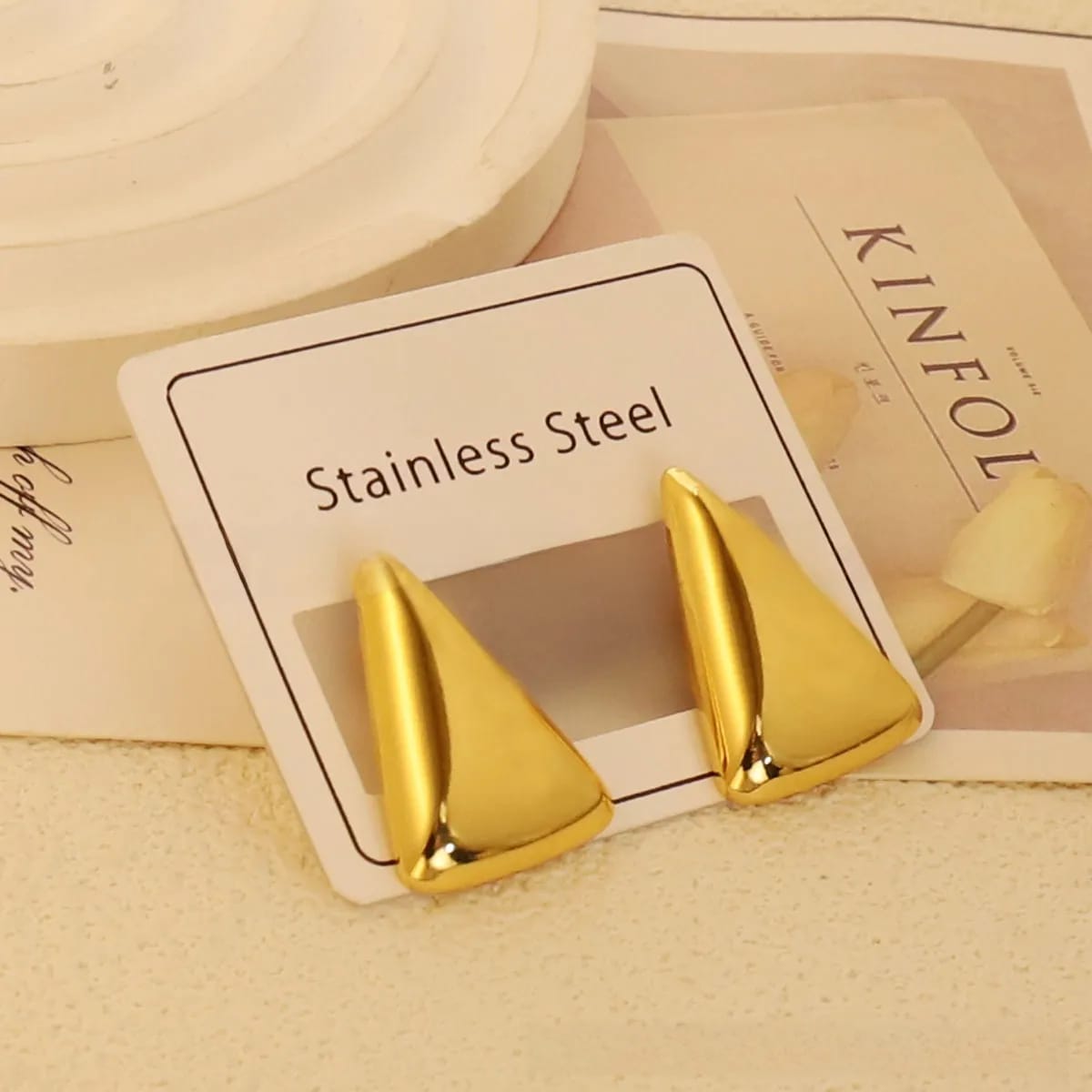 Aretes dorados de triángulo, acero inoxidable, chapados en oro de 18 quilates, tamaño mediano.