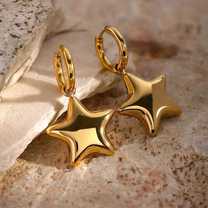 Aretes de estrella, acero inoxidable chapados en oro de 18 quilates.