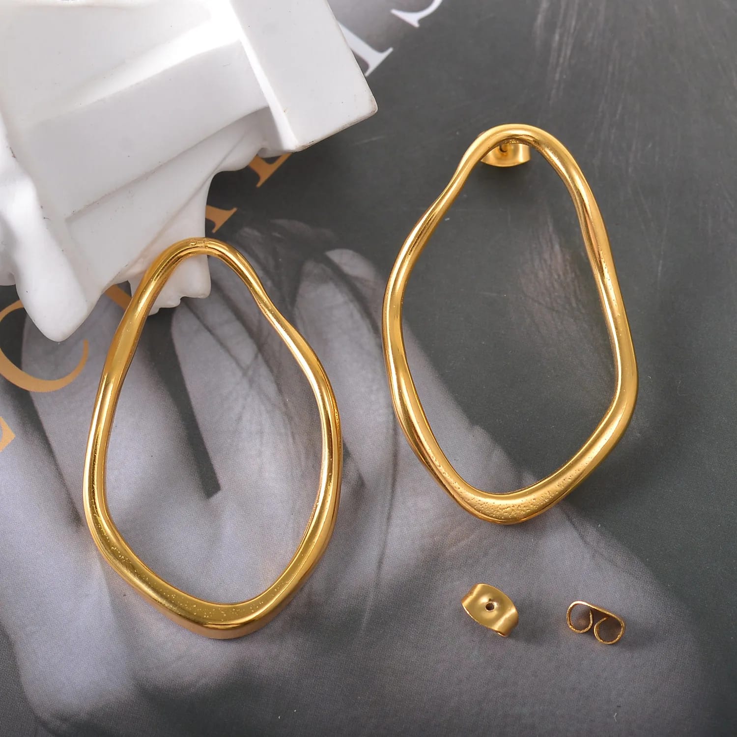 Aretes ovalados huecos, color dorado, super ligeros, acero de titanio, tamaño grande.