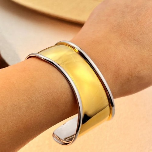 Brazalete liso de acero inoxidable, chapado en oro de 18 quilates. atemporal.