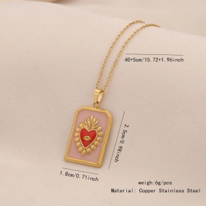 Collar de acero inoxidable, chapado en oro de 18 quilates, sagrado corazón, plaquita esmaltada fondo color palo de rosa.