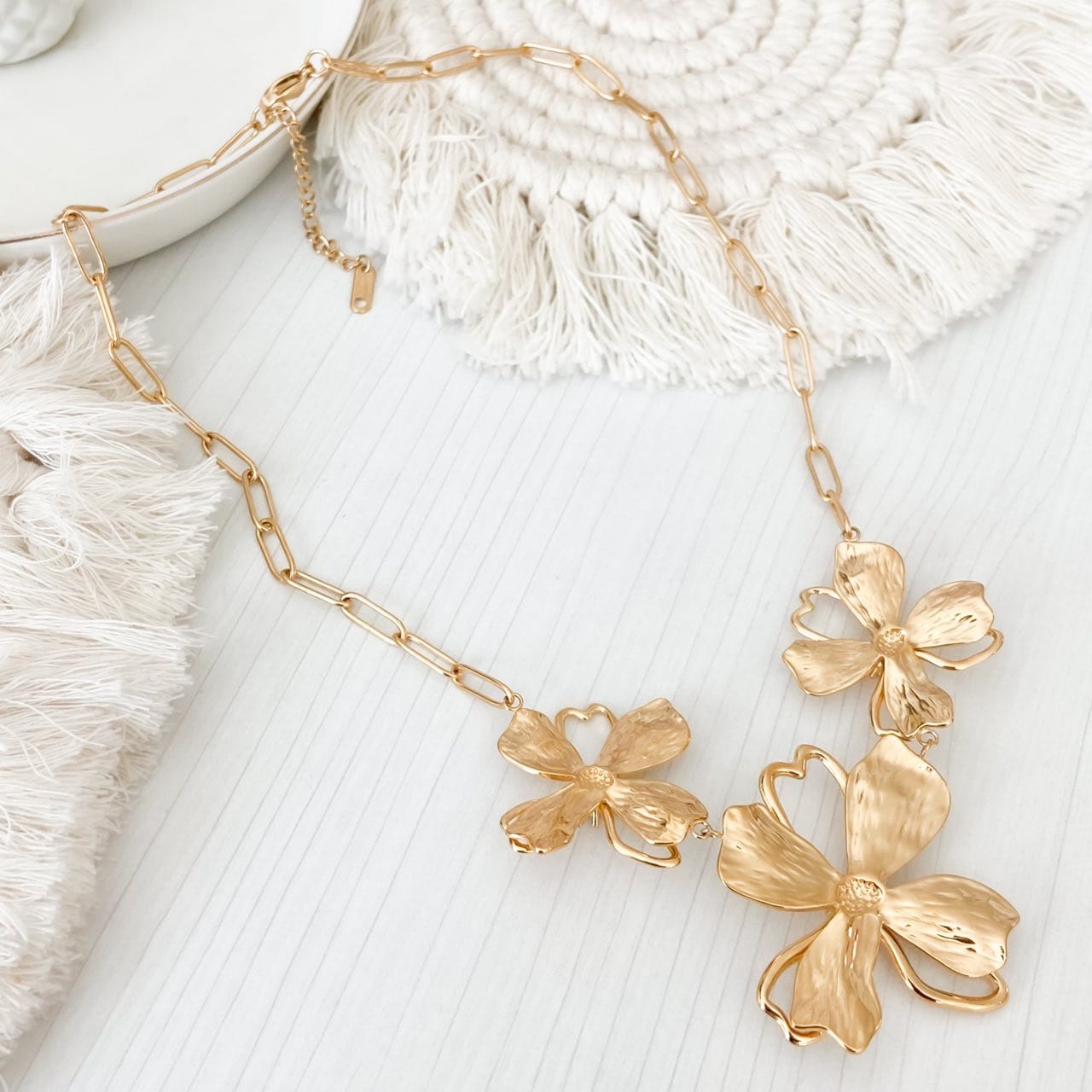 Collar corto ajustable, con flores, acero inoxidable 316 L , hipoalergénico, resistente al agua.