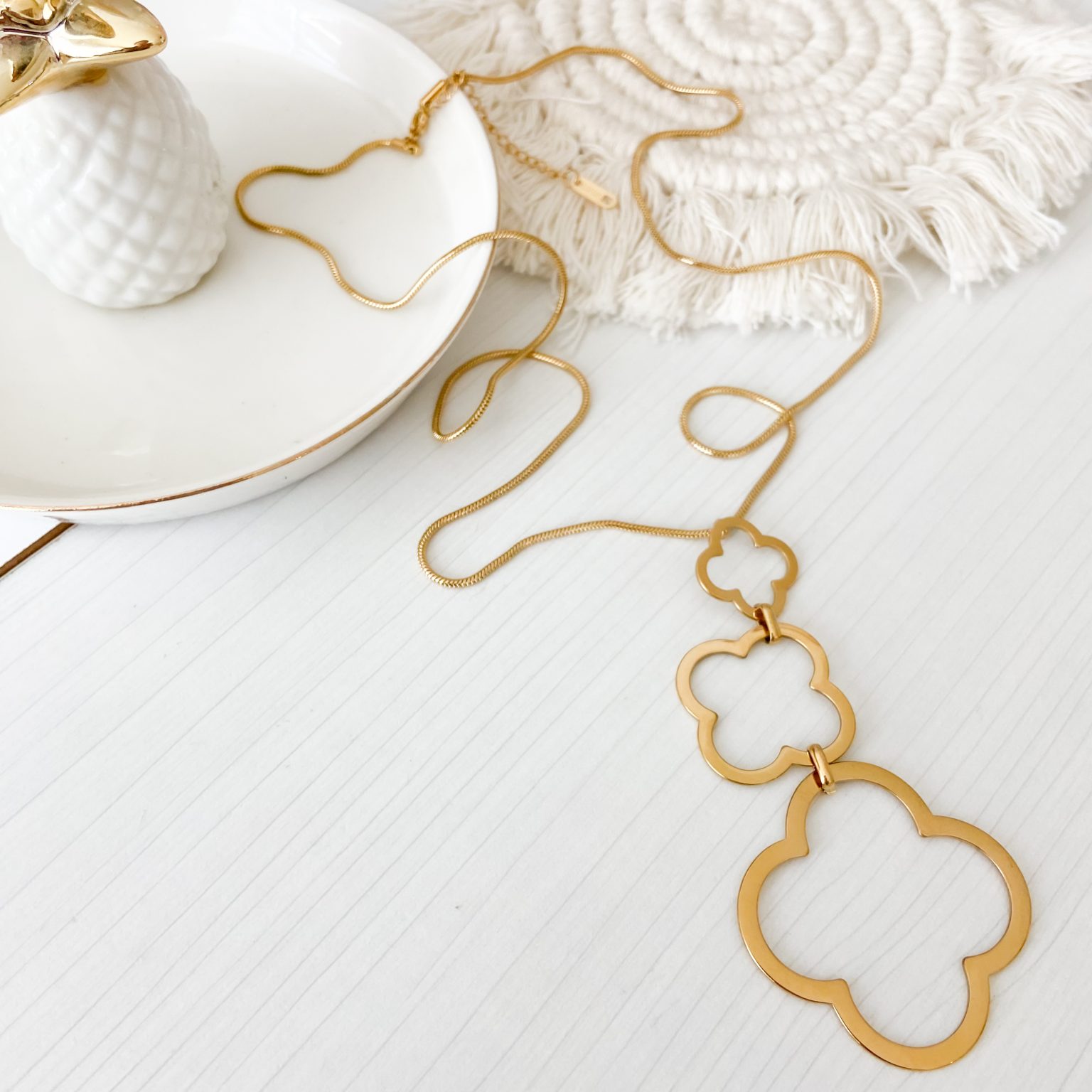 Collar largo trébol triple, Bafy joyeria.