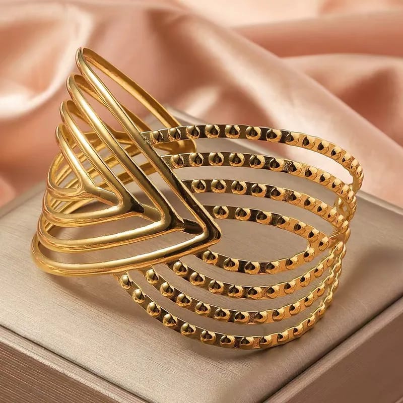 Brazalete de capas texturizado, ajustable, acero inoxidable.