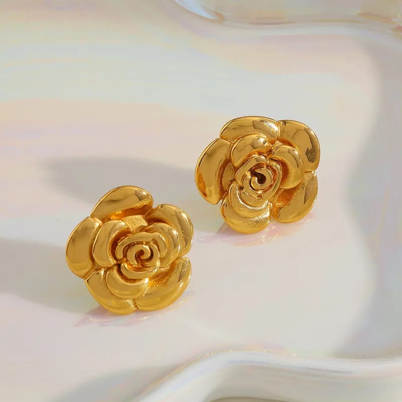 Aretes de flor dorada, de acero inoxidable , chapado en oro de 18 quilates, tamaño mediano.