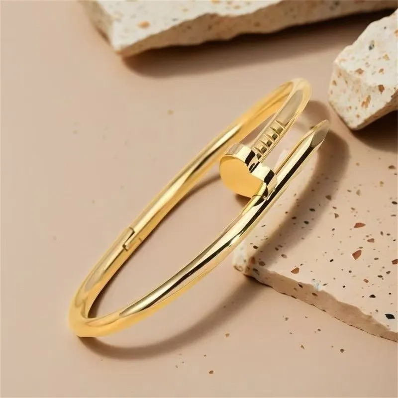 Brazalete de clavo corazón , de acero inoxidable, chapado en oro de 18 quilates.