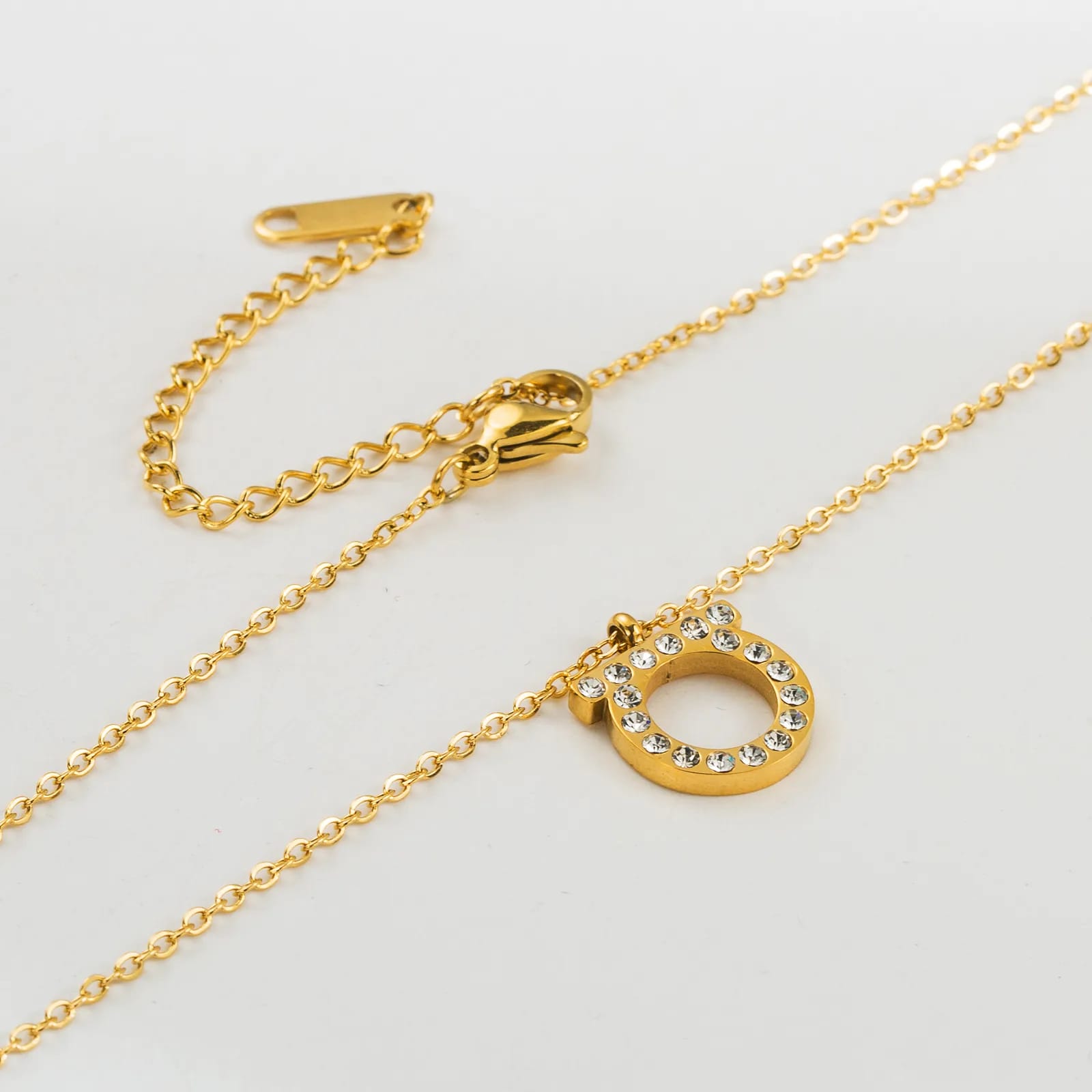 Collar con dije de circonias, acero inoxidable, chapado en oro de 18 quilates, ajustable, ligero.